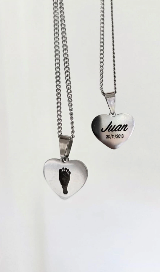 Cada pieza es única y hecha a mano, grabada en acero quirúrgico de alta calidad para que perdure intacta con el paso del tiempo.