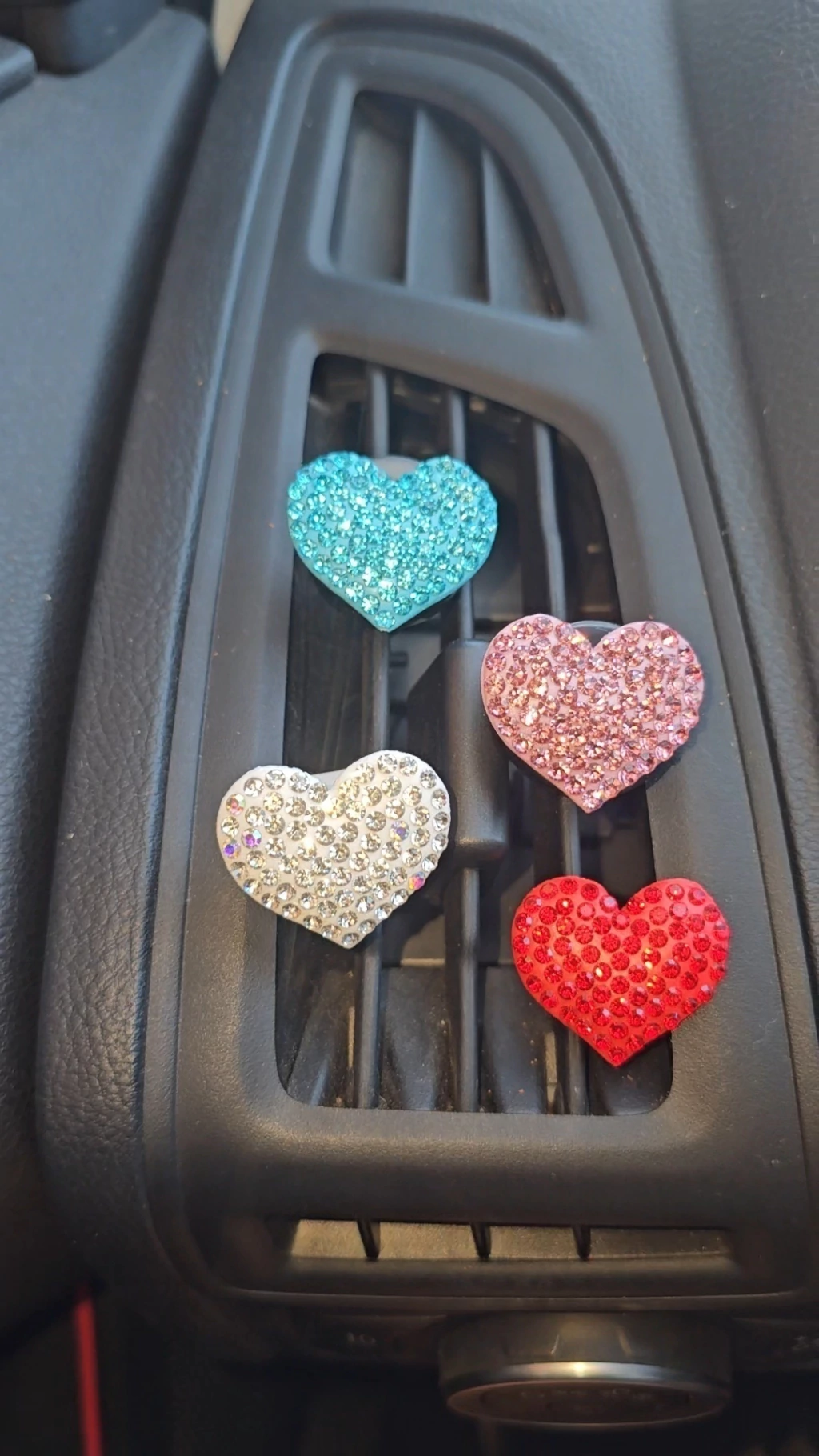 Corazones y flores Con todo el brillo coloca fácilmente en la ventilación de tu vehículo. Disponibles en los colores más elegantes y suaves: